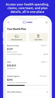 Key features: Find care - Search for a doctor near you. Results are always in-network and include personalized cost estimates and quality data so you can make choices that are right for you. Past care - Track your health care spending and claims with at-a-glance information about what you’ve spent and why. Plan status - Track how much of your deductible you’ve met, see your HSA balance, and review basic information about your health coverage all in one place. eCard - A medical insurance card is part of the app so you’ll never be without your insurance card again.