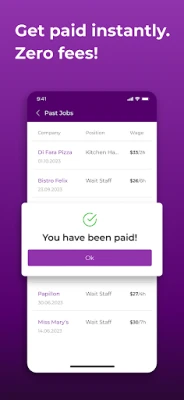 No more waiting for payday. Complete a job, get paid immediately.