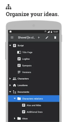 KIT Scenarist will allow you to have at hand all your screenplays. You can write down ideas, work out dialogues of characters, or describe actions without leaving the hammock. Send the script to the editor by mail during a trip on the subway. And even edit projects at the same time as your co-authors from different parts of the globe.