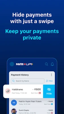 ● Built-in privacy: hide/unhide payments, personalised UPI ID, QR scan without sharing number, no OTP card swipes