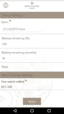 This app works with the rotary winding case from Patek Philippe that allows the maintaining of the automatic mechanism of your watch.